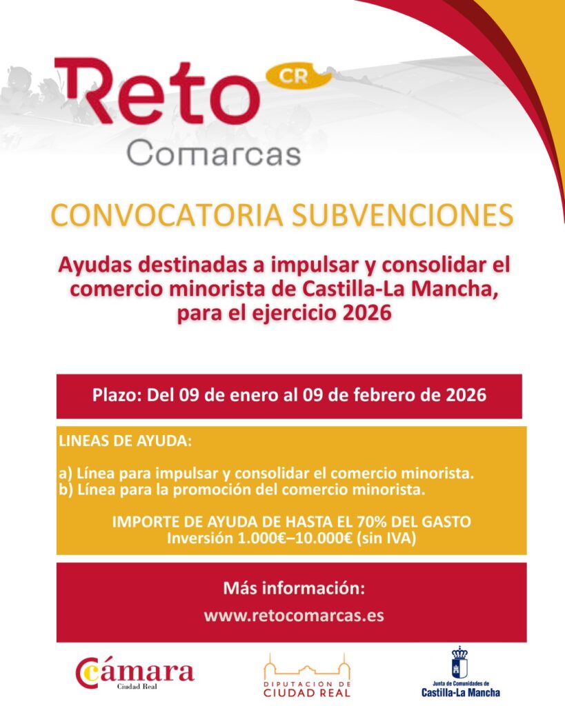 La Junta de Comunidades de Castilla-La Mancha ha publicado la convocatoria de ayudas para impulsar y consolidar el comercio minorista en 2026, dirigida a apoyar la modernización y competitividad de los pequeños negocios de la región, especialmente en el medio rural. Estas ayudas, gestionadas por la Consejería de Economía, Empresas y Empleo, cuentan con un […]