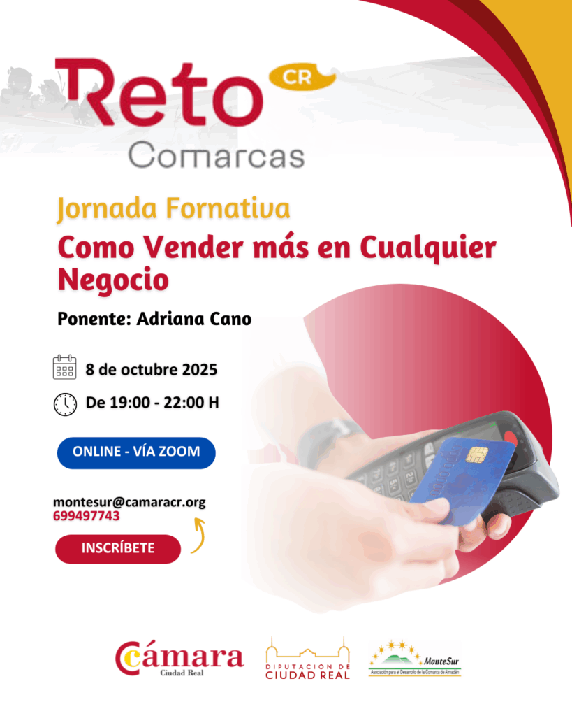 El día 8 de octubre a través del programa RetoCRComarcas, ponen en marcha la jornada formativa “Cómo vender más en cualquier negocio”, dirigida a pymes, emprendedores y empresas con domicilio social en la comarca MonteSur.