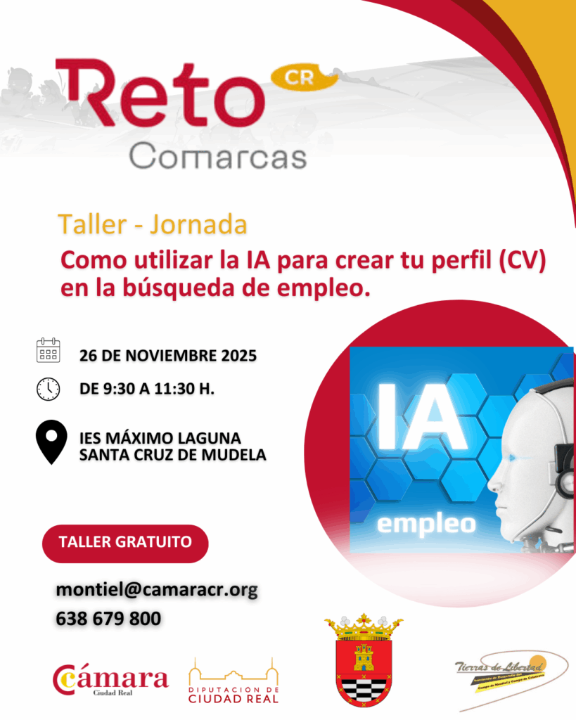 Te invitamos a nuestro taller presencial gratuito: «Como utilizar la IA para crear tu perfil (CV) en la búsqueda de empleo». Un curso práctico y directo de 2 horas para estudiantes de Segundo de Bachillerato, pensado para que aprendas a sacar el máximo partido a tu perfil.